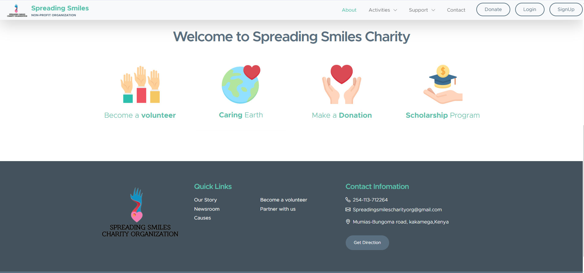 The complete platform system that was developed for the NGO organization Spreading Smiles functions to handle secure donation processing and volunteer management activities and administrative tasks based on user roles.